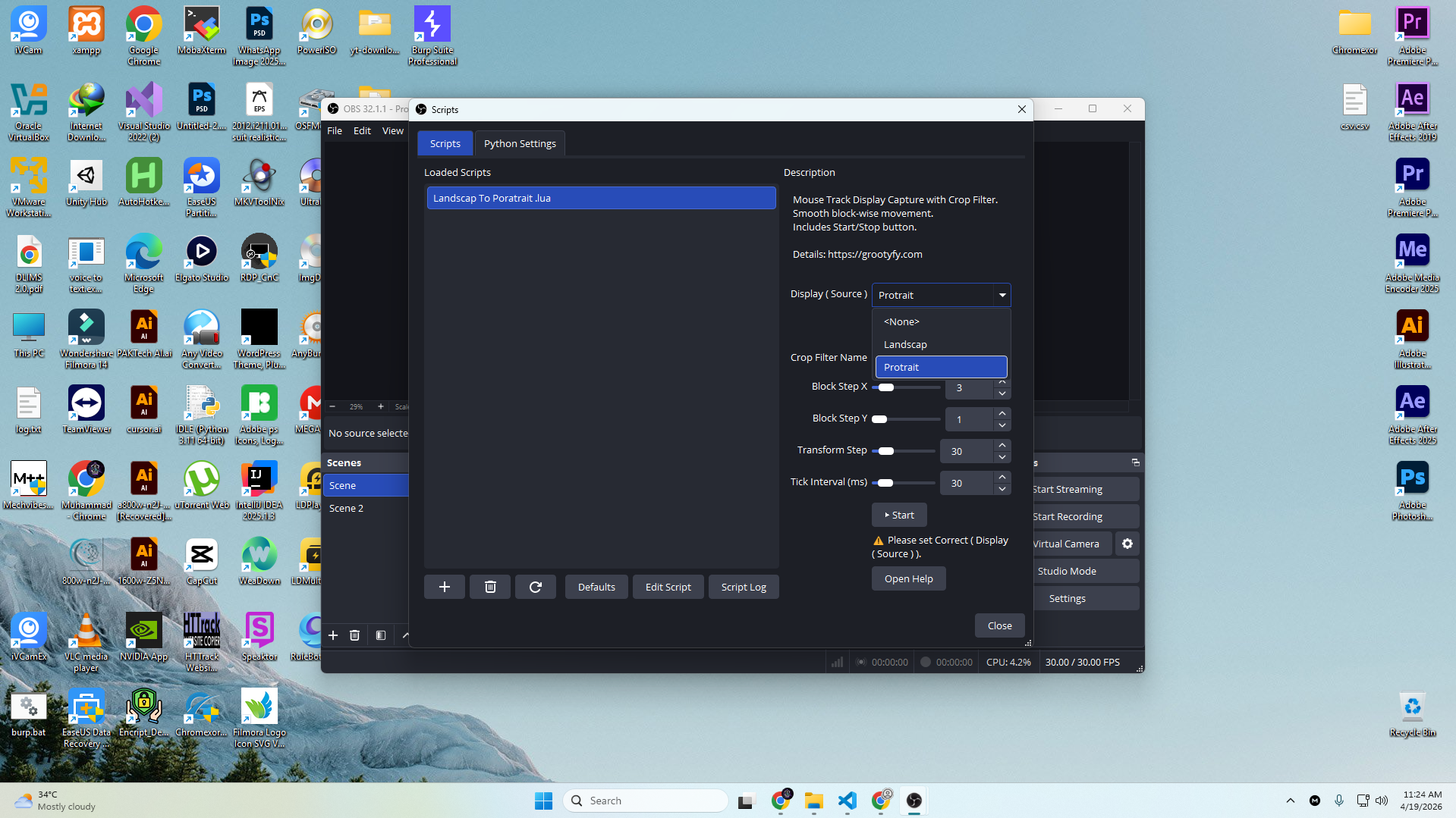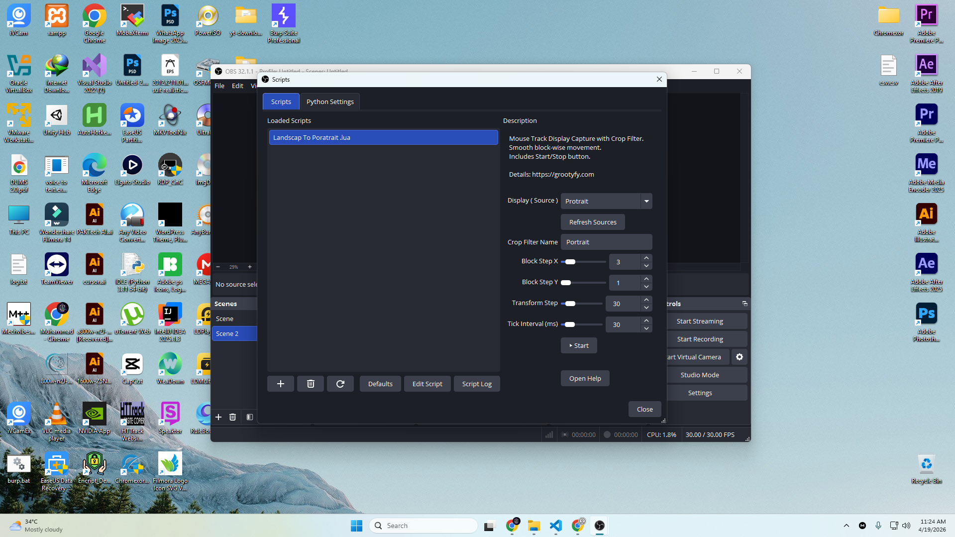 A professional Lua automation tool for OBS Studio that tracks mouse movement and dynamically updates crop filters on display capture sources in real time. Designed for landscape screens, portrait displays, and multi-monitor recording setups, this tool creates smooth zoom-follow effects for tutorials, gameplay, coding videos, presentations, and live streaming.
